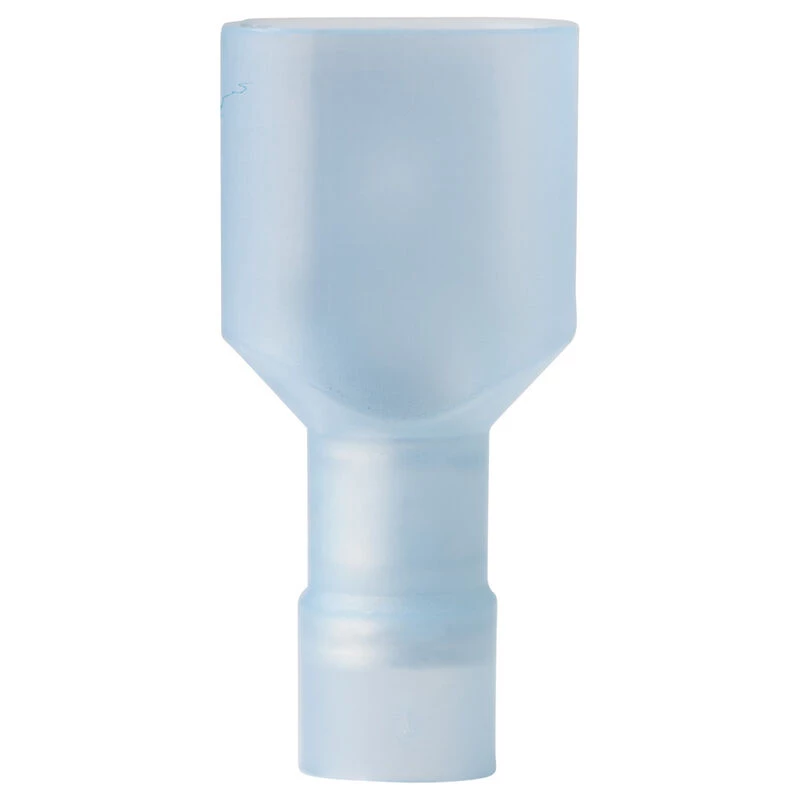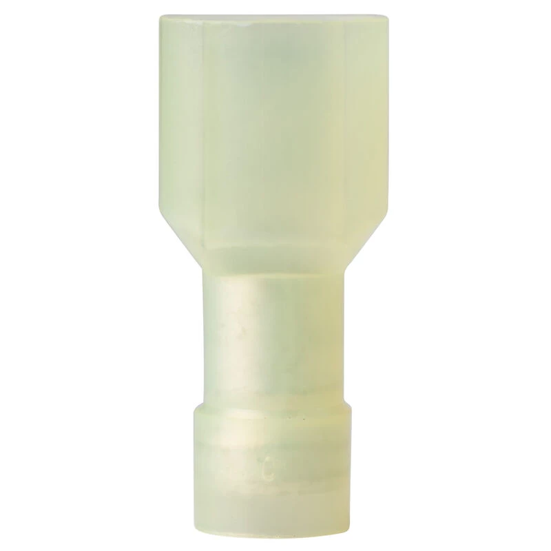 Nylon insulators are a good choice because they are easy to crimp and won’t split, making it necessary to add tape or to crimp on another terminal. The funnel entry barrels are designed to tightly grip the wire with the least effort.