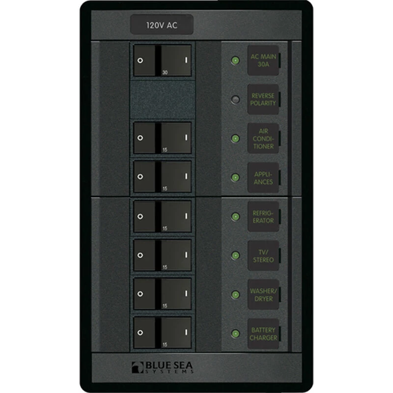 Blue Sea Systems 360 panels are known for their modular customization qualities. With clean flat rocker switches and modern styling, many boaters have come to appreciate the look and design of these panels. But not all boaters need the same level of customization. Blue Sea Systems recognized this demand and has created a series of panels based on commonly used breakers aimed at AC and DC systems.
