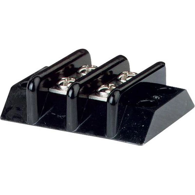These Blue Sea Systems rib insulators are a great way to organize AC and DC wires. Commonly used to extend or create junctions in wiring harnesses and cables, these compact terminal blocks are 7/8″ wide and provide space to join 2 individual circuits. Ideal for creating a break in existing wiring when disassembling a boat for transport. Separate busbars with terminal screws ensure that each circuit is isolated from adjacent circuits. The nylon or phenolic block isolates power from the mounting surface. In applications that require several circuits to be joined, jumpers to match current ratings of the terminal block are available to create common circuits. Sized to match the current loads, make sure that the block you choose is rated to carry the current required and has enough terminals, plus some room for expansion.