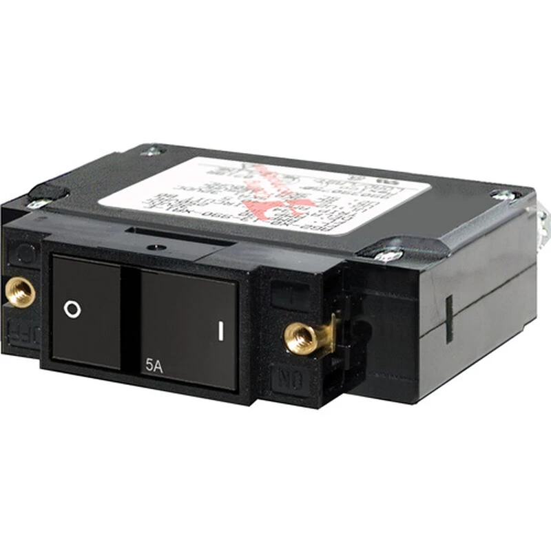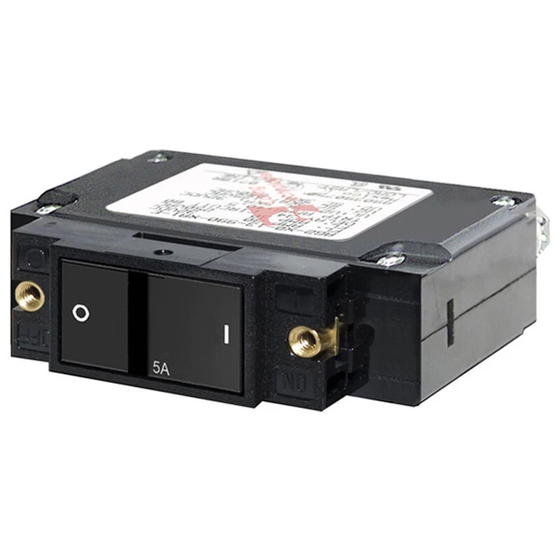 The C-Series circuit breakers combine circuit protection and switching into a flat rocker switch and are designed to fit Blue Sea Systems 360 panels and modules included in SMS enclosures. Quick changes to the correct protection can be made by removing a cover to an open position or by changing out an existing breaker; mounting holes and fasteners match to make it fast and easy. All C-Series breakers are now CE marked.. These breakers are capable of handling short start-up current surges found in electric motors and other appliances without tripping. For added safety, a Trip-Free feature prevents the rocker from being held in the ON position when a fault is detected. These single pole breakers are available in 5A-100A protection ratings to match different circuit protection needs.