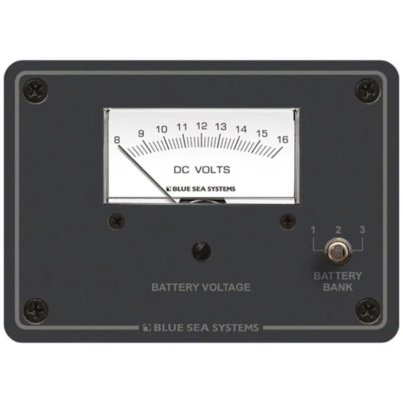 The lifespan of a battery bank is dependent on how it has been treated. Discharging a bank below manufacturer’s recommended levels or leaving a battery discharged for long periods of time can shorten its life. Voltmeters provide boaters with the critical information they need to maintain and maximize battery life. Blue Sea Systems offers two pre-mounted voltmeters aimed at three battery bank systems. A three position selector switch chooses the bank to be monitored. The gray aluminum mounting plate will look at home next to larger industry standard Blue Sea Systems panels in the nav-station or at the helm. Analog meters provide an LED for use in low or no light situations.