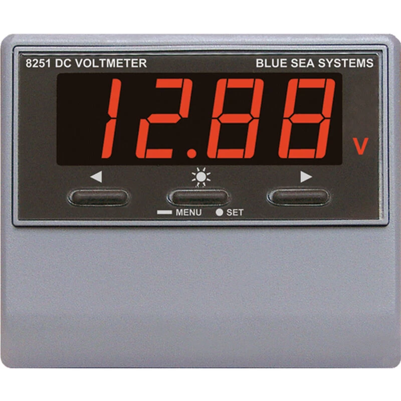 Monitoring your electrical system keeps it functioning to its full potential, increases the lifespan of your batteries and alerts you to changes before they become issues. Blue Sea Systems provides a compact way to get electrical information in an easy to read LED display. Choose the right meter to provide just the information you need to confirm your systems are functioning. Available in single function displays to show AC voltage, DC voltage, current, or frequency. Install several single function meters to monitor formation simultaneously; or select a multimeter and page through the information using push button keys on the face.