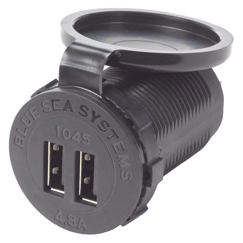 Wouldn’t a smartphone or tablet charger be more practical than a 12V outlet? Blue Sea Systems has designed this fast charge USB charger socket to fit where that outlet you haven’t used in years sits. Just remove the existing outlet, replace the connectors as necessary and fit the new outlet into the dash or bulkhead. This USB charger recognizes the needs of your device and charges it as necessary and provides two USB sockets to connect devices. An attached cover keeps out dust and moisture while not in use. Make better use of the space at your helm by installing a practical USB charger.