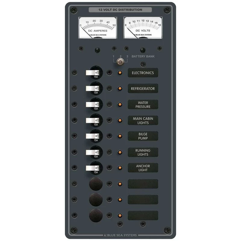BLUE SEA SYSTEMS Traditional Metal DC Circuit Breaker Panel with Meters, 10-Position