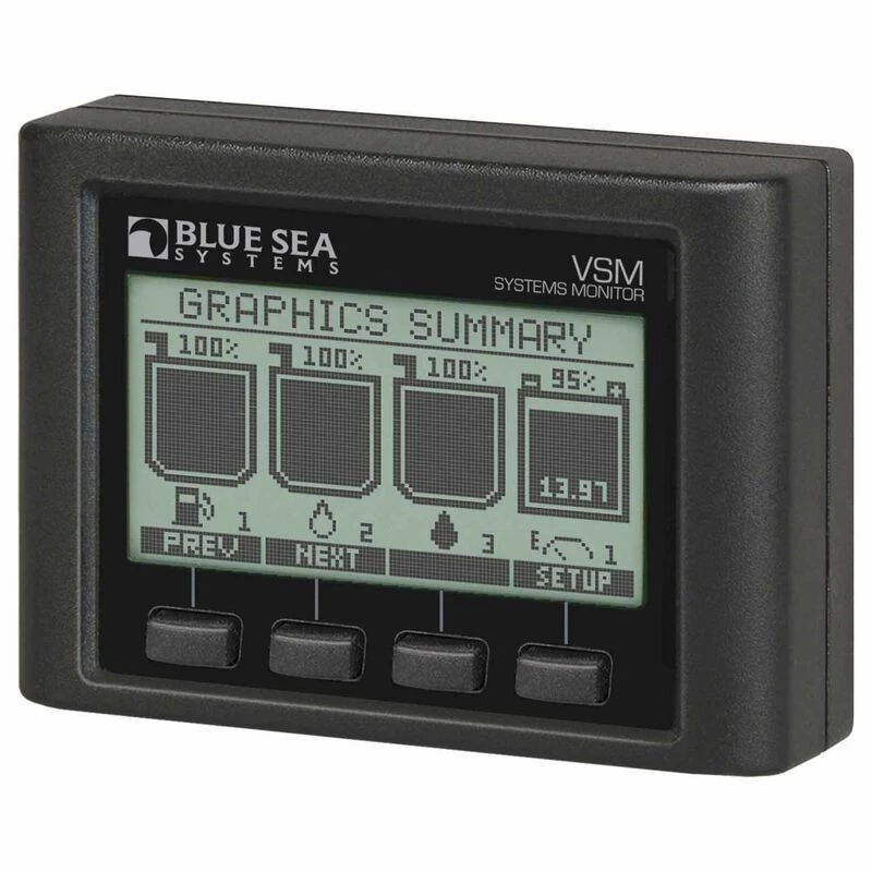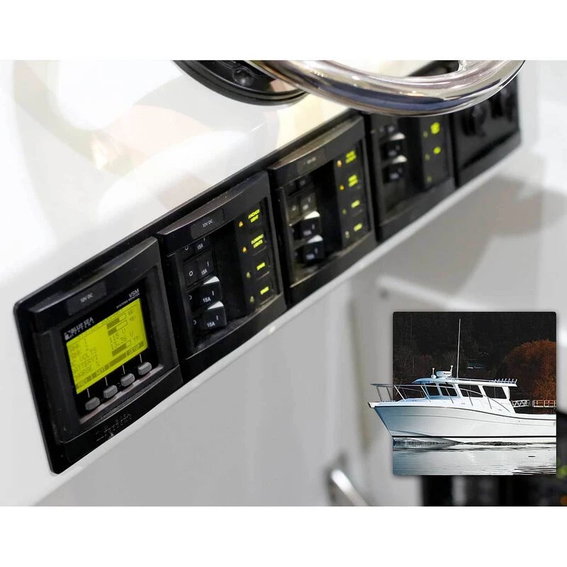 Four meters in one, the VSM 422 saves space and costs less than four individual meters! Blue Sea Systems’ Vessel Systems Monitor displays data on four critical ship’s systems (DC and AC electric systems, tank levels, and bilge), helping you identify problems on your boat before they become emergencies.