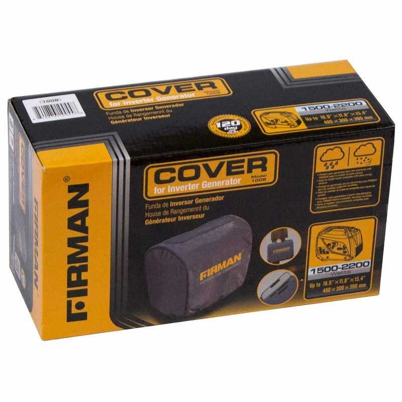 The Firman Power Equipment Small Inverter Generator Cover protects your FIRMAN Inverter from the roughest of elements. The FIRMAN Inverter cover is durable, water resistant, and made of heavy duty vinyl to protect your Inverter in the toughest of conditions. Keeps safe from rain, snow, UV rays, dust storms, damaging scratches, and other elements of outdoor life.