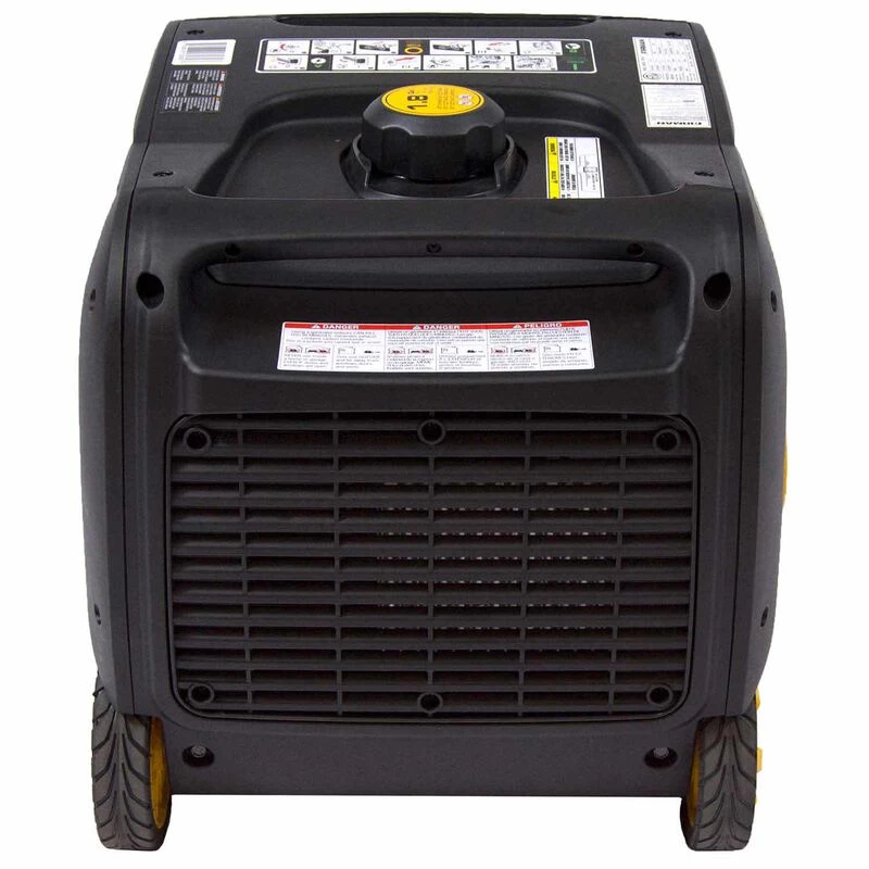 For the ultimate in portability the W03082 is less than 96.8 lbs. with a built Tuff-Stuff handle and wheel kit. Major touch points are all front and center for easy starting and use, power, choke, eco-mode and all receptacles are conveniently located for easy access. The durable, lightweight, powerful inverter is built for years of use, just add gas! Everything you need comes standard in the box including: oil, funnel, owner’s manual, trickle charger, battery charger cable, and spark plug wrench.