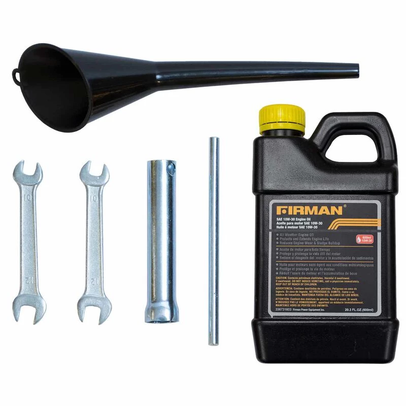 - Accessories Include Oil, Spark Plug Wrench, Shipping Bracket Wrenches, Funnel and Manual