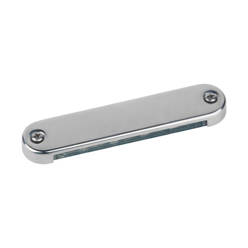 The Duxbury LED courtesy light is the ideal courtesy & step light for indirect marine lighting applications. It contains four “hidden” low power SMD LEDs that project their subtle non-glare illumination in a downward direction to effectively illuminate steps & walkways. The flat profile & slightly rounded edges make them ideal for stair risers. The all stainless steel cover is securely installed with screws over the fully sealed & potted LED sub-assembly, resulting in secure mounting & a 100% waterproof installation. They draw minimal power, run cool & are completely maintenance free.