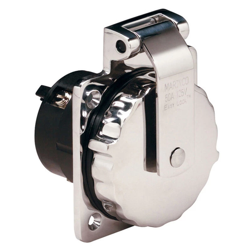 Marinco stainless steel inlets are solid-cast marine grade 316 stainless steel and include a heavy-duty cap strap for strength and durability. Their robust construction and corrosion resistance provide long life in the harsh marine environment.