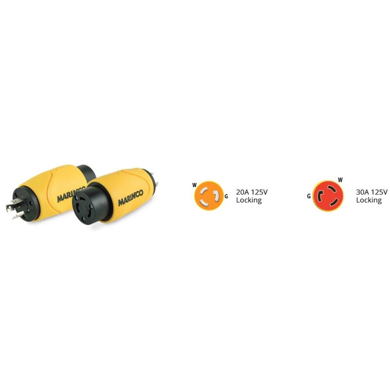 Use this adapter between a 20-Amp locking shore power pedestal and your boat’s 30 shore power inlet.
