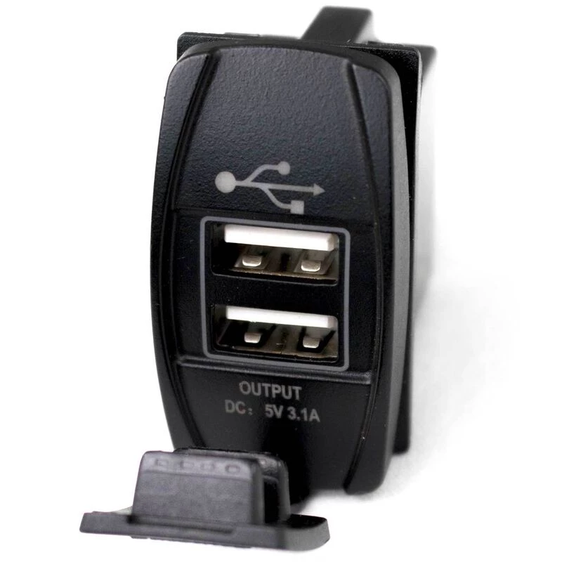 MARINE SPORT LIGHTING Rocker Style 2 Port USB Panel fits into any rocker panel cut out, and installs in the dash to control all of your USB devices and cords. The rocker USB mounts like any other 12 volt rocker switch, but acts as a USB through portal. The LED in the switch lights up nicely to illuminate at night, making it easy to find and plug in.