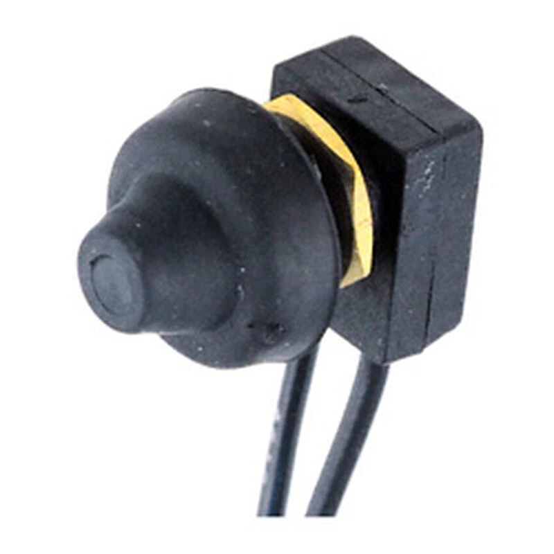 Simple push-button switch with a weather-resistant cover for panels up to 1/8″ thick.