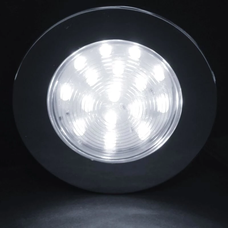 The WEST MARINE 16-LED Accent Light features bright white LED lights that are extremely energy-efficient and can be recess-mounted inside or out with a fully potted LED array board for total moisture resistance. And because they don’t use bulbs with filaments, you won’t have the cost of replacing them. Includes a chrome-finish bezel for a styled look.