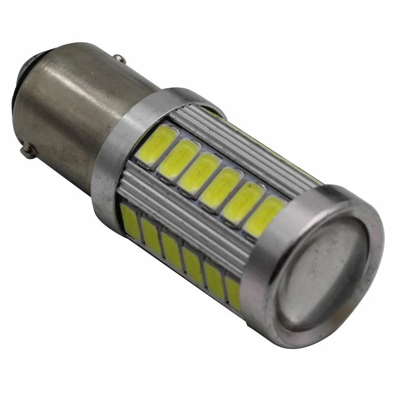 This bulb replaces and has similar brightness to 25 watt traditional bulbs using the tall globe. Cross reference #’s BA15D 1142 GE89 GE90 #90. This is a single brightness bulb with dual contacts, and in line pins. 10-15VDC input range. 415 max lumens, radiates in all directions.