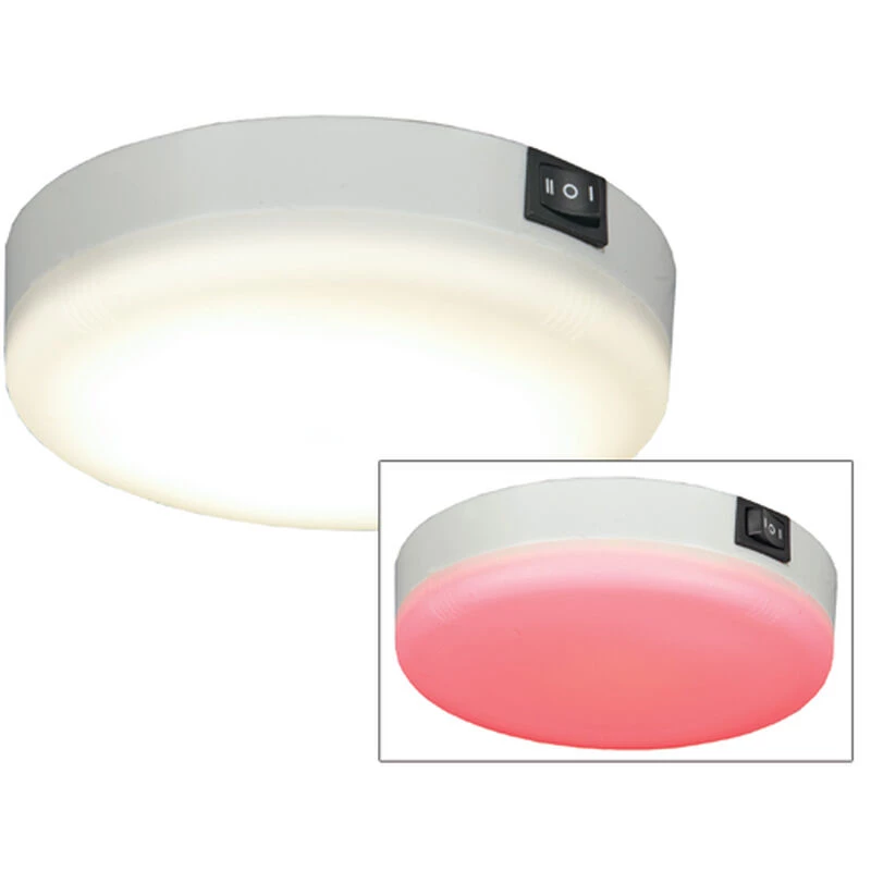 Great for cabin or compartment, this surface-mounted dome light features a three-position White/Off/Red rocker switch for white or red light to preserve night vision. Incredibly long-lasting LEDs have low amperage and are shock and vibration proof. Made of non-corrosive, heat-resistant molded polypropylene resin for interior use.