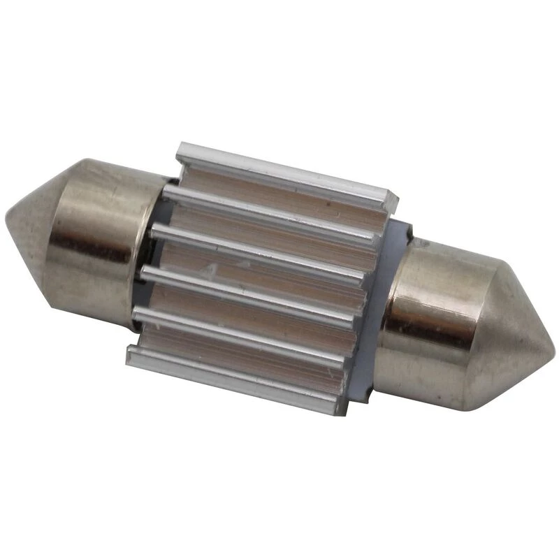 This bulb replaces and has similar brightness to 10 watt Halogen/Filament Festoon bulbs. Fits many 30-33mm sockets which call for 1 1/8″ or 1 1/4″ bulbs. This is the short or stubby festoon. 11-14VDC input range. Cross reference #’s 3022, 3175 DE3022, 6428, DE3021, 7065, DE3175, DE3022LL, DE3021LL, DE3175LL.