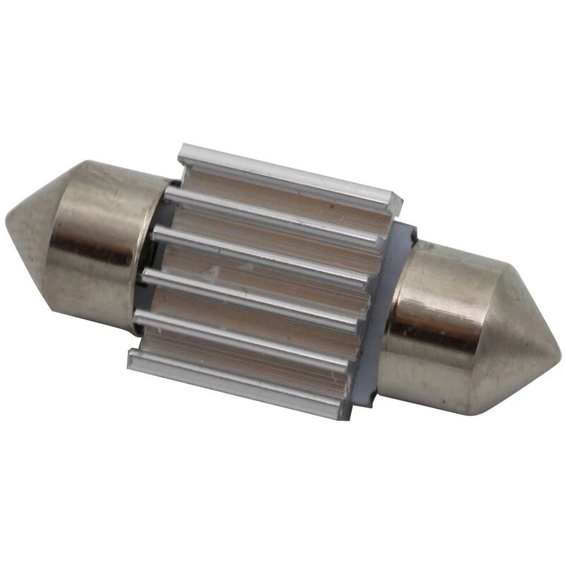 This bulb replaces and has similar brightness to 10 watt Halogen/Filament Festoon bulbs. Fits many 30-33mm sockets which call for 1 1/8″ or 1 1/4″ bulbs. This is the short or stubby festoon. 11-14VDC input range. Blue.