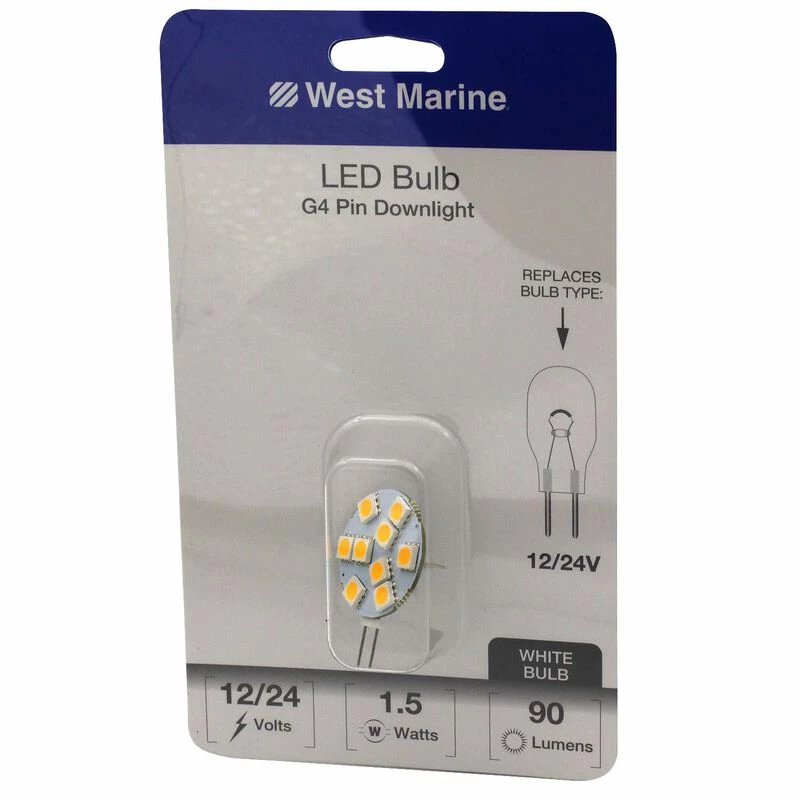 The WEST MARINE G4 Side & Rear Pin Downlight LED Disk has been designed as a replacement and upgrade for standard halogen, Xenon and incandescent filament bulbs, offering dramatically lower power consumption and heat generation, while having much greater lifetime and shock resistance. For even greater light output and quality as well as higher efficiency (more light per watt) please look to our Premium series bulbs.