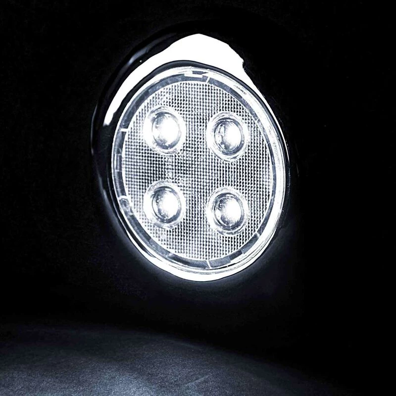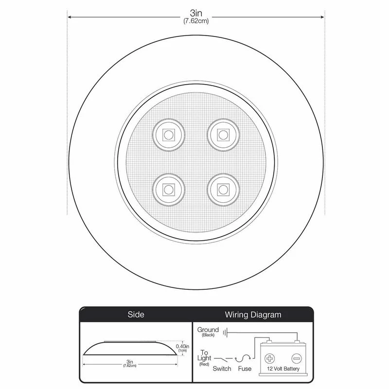 Stainless steel 3″ diameter interior light features filament-free, vibration-poof LED elements that combine low draw with incredible longevity and reliability. Require external switch.